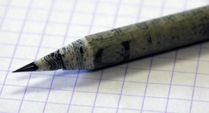Here’s something I have never resolved in my love of pencils: the wood consumption. Although I would not consider myself an environmental activist, I try to live my life in a green manner — I drive a fuel-efficient small car. I recycle. I use the blank backsides of paper. I use travel mugs, not paper cups. Et cetera, et cetera.