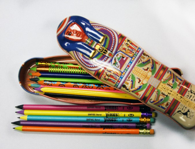 Just a mo! I had that Egyptian mummy pencil tin! On the inside, it’s a lady with her bossoms out, right? Ah, primary school.