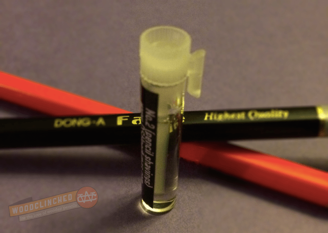 One of our amazing Erasable listeners and Facebook group members, Mica Thomas*, sent Johnny and me some samples of a perfume her friend, Dawn Spencer Hurwitz of DSH Perfumes, created. It’s called “#2 (Pencil Shavings)”.
