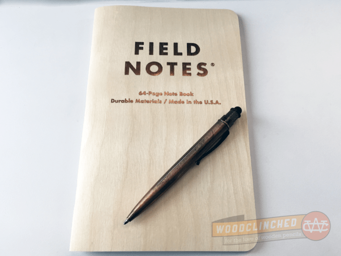 I think what’s most and immediately striking about this edition is the “FIELD NOTES” logotype in a beautiful dark copper, on top of the birch cover.