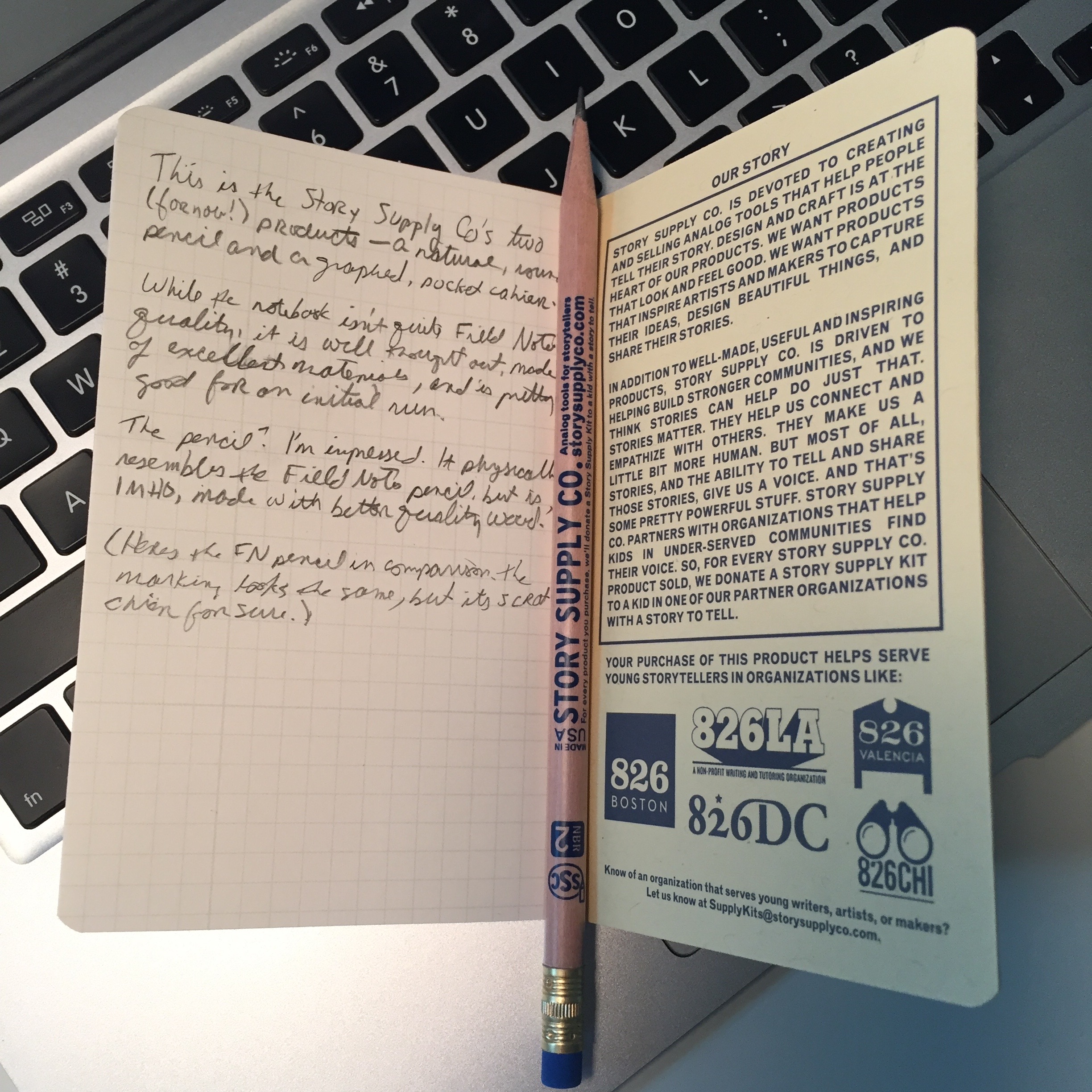 They leave very similar marks, but the Story Supply Co. pencil is noticeably smoother to write with than the scratchy Field Notes pencil.