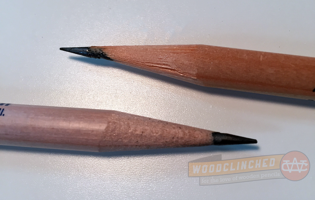 (It’s worth noting that this is a Musgrave-sourced pencil, so there’s a good chance it’s basswood, which seems to be confirmed when the shavings are next to the more pink Field Notes pencil. I also see a definite woodgrain, which makes it seem like the Story Supply Co. pencil isn’t processed wood.)