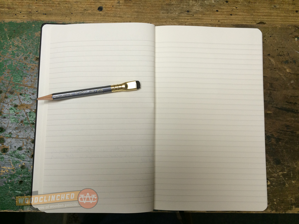 It’s available in both lined and plain. Since the guys at Pencils.com know I am not an artist, they sent me a lined one to try out. The grey lines are set apart 0.25” on an off-white paper. The paper is smooth, but not as smooth as Rhodia paper. It has a little tooth on it, specifically engineered — I hope — for pencil. It’s the perfect amount to grab your graphite but still feel smooth.