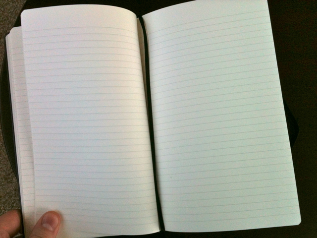It is of superb quality. It has more of a hardcover book-like binding the Moleskine, and though it’s a bit stiffer when I lay it out on a tabletop, it’s getting better, and I don’t feel like I’m pulling the paper out while doing it.